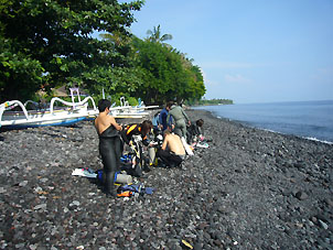 光景は派手ではなくとも魚種はいっぱい、数もたくさん! いや〜楽しいですよ。 メンバーの皆さん、あっちこっちで写真撮りまくりです。 うちのツアーはどうも流れが速かったりでイケイケダイビングになりがちですが、今回のバリ島ツアーは皆さん生物をジックリいっぱい見ることが出来ました。 海から上がってきてから「あれはなんだ?こりゃなあに?」と とっても楽しそうでした。 |