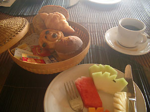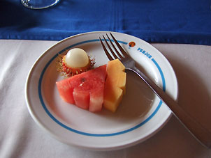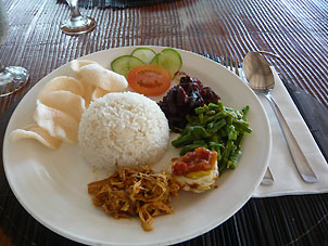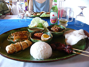 ミンピ トランバンではホテルの中のレストランで食べても安かったです。 3回の晩御飯と飲み物、最後の精算では2,000円程度。 しかもナシゴレン(焼き飯)、ミーゴレン(焼きそば)焼き鳥、えびせん などに日本人には美味しく感じられる料理です。 ワタクシゴトながらナシゴレンはかなり気に入っていました! |