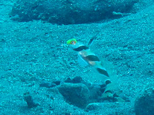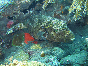 ダイビング1日目は沈船で潜りましたが、2日目はミンピリゾートのすぐ近くのポイントで潜りました。 ドロップオフとハウスリーフ。 ドロップオフは泳いでゆくとどんどん落差が出てきて生物も多くなります。インドネシアならではのエバンス(ハナゴイの仲間)や沖側を通るウメイロモドキやハナタカサゴに見とれます。 ビーチエントリーでありながらアケボノハゼやアオマスクも見られるってなんだかありがたいようなありがたくないような。 |