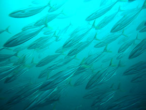 ・夏のような日差しの日曜日、神子元へ遠征してきました。 黒潮はなかなかシャッキリ近づかず、伊豆半島の水も不安定です。神子元も同じで下の方の水温は低いままです。 1本目はジャブ根からエントリー。水面から5〜8mは青くて暖かい夏の水でした。でもその下は濁っていてさらに下はきれいになりますが水温は15℃まで下がります。そんな中をカメ根方面へ流します。 水は冷たいのですがワラサ、スゴイです!何回もワラサの大群に出会って、時には私たちの周りはすべてワラサの壁になったり。ワラサたちの筒の中で至福の時間を過ごしちゃいました。 2本目はカメ根。青い水はあまり無かったのですがやっぱりワラサいっぱい。最後の水面で船待ちの時まで足元でグルグルされました。 他にもトビエイ、イサキ、タカベ大群、グッチャリのキンギョハナダイなどなど。 「15℃の水温に耐えられるか心配だったけど、何度もやってくるワラサの竜巻騒ぎであまり寒さも感じなかった!」と今日のメンバーの感想でした。 今季初の神子元でしたが、やっぱりたまにはこの豪快な海を味わいたくなりますね!