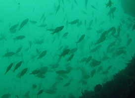 ・7月の3連休、夜半までの雨はあがってくれて曇りベース、時折射す日差しは強烈でした。 海は南西の風でしたが午前中の早い時間ならばたいした波も無く外海も問題ありませんでした。 1本目のフトネは水深20m手前までしか行かなかったのですが極端な低水温はありませんでした。潮流はそこそこ。透明度は決して良いとは言えませんが、メンバーの皆さんは「そんなにひどい感じでもなかったけど」と言っていました。そんな中、魚影はさすがのフトネ。根頭のキンギョハナダイ群れはやっぱりきれい。中層のスズメダイ、イサキも大群でした。 2本目は午後から弁天島。エントリーして少し潜ると冷たさを感じます。そんな訳でほとんど深くても水深10mくらいを移動。外側に行くと大きな岩などが立っていてダイナミック。ムツやマアジの群れも通ります。浅い場所でもソフトコーラルもそれなりに楽しめます。途中、様子を見に下の方に行って見ましたが透明度は良くなるものの水温も低下。16℃くらいまで落ちてしまいます。 ん〜、この低水温域、早く無くなって欲しいものです。