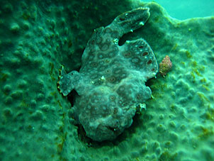 ・日曜日の今日は海が荒れました。 昨夜に通過した前線のうねりと南西の風の影響がまだまだ残り外海のボートはのきなみ欠航、黄金崎に行ってきました。 黄金崎ビーチも波は届いていますがタイミングを見てサーフゾーンをさくさく泳いでしまえば左(沖側)のエントリースロープからのエントリーもぜんぜんできました。エキジットもそれほど苦労はしません。 でも水中の浅場がちょっと揺れていました。ただでさえユラユラしているハナタツなんかは写真も撮りにくいかも。この波で透明度も落ち気味、ちょっと残念なコンディションでした。 それでもスズメダイの大群や大きなイシダイ、ニシキウミウシ、今日はすぐ引っ込んだけどネジリンボウ、オオモンカエルアンコウなどを見ることが出来ました。