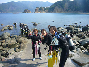 サカエは体育系女子大学の卒業生の3人と黄金崎に行ってきました。海は多少白っぽさはあるもののコンディションはGood!