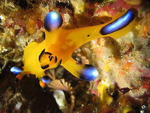 ・昨日同様、北東の風がビュンビュン吹いていました。おかげで寒い1日となりました。でも安良里の海はこの風向きではたいした波も立たずにコンディションは悪くありませんでした。 この風で東伊豆のポイントの多くはクローズまたは波が高い状態だったようでたくさんのショップなどが西伊豆に回ってきていました。そんなわけで賑わっていました。 こんな寒い日は安良里ならではの船着場すぐにあるウェットスーツのまま入れるあたたかいお風呂は本当に気持ちいいです。 海は飛び込んですぐに「おやっ」、水がきれいになっています。水面から下を見ると水深15mの水底が見えました。水温は昨日よりちょっぴり上がったようで私のダイコンで20℃〜21℃。黒潮次第で今後さらに上がる可能性だって少なくありません。そうなってもいまさらって感じもしますが… きれいで青い海中では今日も魚がいっぱい。スズメダイ、イサキの子、ネンブツダイはやっぱり見事な大群。そこへ小さいけどカンパチの編隊が狙いをつけたり。もちろん大きなマダイは何匹も。 岩の下ではマツカサウオが並んでいたり、大きなコロダイやイシダイも。2本目の前半は視点を変えてピカチュウウミウシやベニカエルアンコウなんかを見て楽しんだりして、後半はまたもや”群れ群れ”で遊んで船に戻ってきました。 |