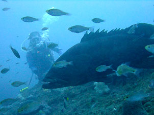 ・前日は西風の影響でクローズとなった雲見も今日は潜ることができました。 いくらか残っていた波も次第に収まってきました。天気は良く晴れて富士山もバッチリ見えるし陽気もポカポカ、すっかり気持ちのいいダイビング日和となりました。 海の中もあいかわらず水はきれいです。前日のうねりのせいかほんのちょっと白っぽい気もしますが良好な透明度でした。 今日のゲストの方はイシダイが好きとのこと。(それからクエも)銀色の体に真っ黒い口となった大きなイシダイも至近距離でじっくり見れたしクエもクリーニング中を接近できました。ネンブツダイの群れや潮上となった小牛の砂地あたりのマダイ軍団、イサキの子の群れ、スズメダイの群れも賑やかでした。 ところで、本日のお客様、鹿児島でイワシDの名を聞いたとのことで潜りに(秋から2回目)来ていただきました。前は鹿児島に住んでいて今は山梨県にお住まいとのこと。 先週もほぼ同じパターン(お住まいは九州→山梨、イワシDの名を鹿児島で聞いたという)の方が来られていましたが、お2人ともウチの名前を知った場所も違うし、なんのつながりもありません。 地元の伊豆ではチンケすぎてほとんど誰も知らない「イワシダイバーズ」なんて存在を遠い鹿児島で聞いたって方(しかもどちらの方も山梨在住)が続けて来ていただくなんて不思議なこともあるものですね(笑) でもありがたいことです!!