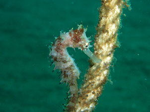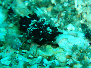 ・3連休の最終日。海辺も西伊豆の街もずいぶん賑わいが落ち着いています。 今日はしだいに南西の風が吹き始めてきましたが、黄金崎は静かなままでした。 朝一番でエントリーするとそこは青い水が広がっていました。ダイコンの水温表示もも27℃と出ていました。こんな水温でいいのでしょうか。 2本目は透明度が白っぽくなって落ちたように感じましたが、やはり朝はきれいですね。 砂地に降りると多少青みは落ちて、水深14mあたりからは多少水温は落ちました。でも水温27℃の感覚に慣れてしまったら23℃でもヒンヤリ感じると言う困った状況です。 浅場は水は青くあたたかくなった影響か魚はいくらか減った気もしますが、南の海はこんな感じですよね。視界がドロッと感じるくらい魚でいっぱいという伊豆ならではの光景も捨てがたいのですがね! 今日見てきた生物はウミテング(チビ、2匹)、イバラダツ(これも2匹)、ハナタツ、ニシキウミウシ、やたらたくさんいたニシキツバメガイ、クマノミ、中層のスズメダイ、マアジ、子カンパチ編隊、などなど。 これからさらに生物が増える時期になるわけですが、なんだかこれからの黄金崎、楽しみです。