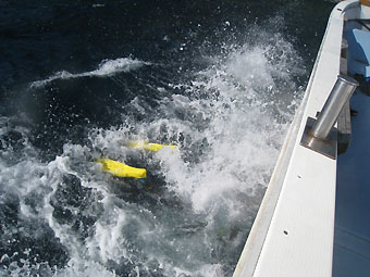 湯瀬 ふたたび 硫黄島でのダイビングの後は港に戻って一休み。 そして湯瀬に向けて出港です。波の感じは昨日と同じかな。 湯瀬に到着すると、なんとめったに見ない釣り人が岩に上がっています。邪魔をするわけに行きませんので昨日のエントリー場所は使えません。 潮の向きは今日もゆっくり南から。じゃあ、久しぶりにハナレ瀬で潜りましょう。 静かな場所でタンクを背負ってハナレに移動。一斉にエントリー。透明度は25mくらいかな。絶好調とはいえないまでも良好な透明度。 一気に落ちる地形は迫力あります。ハギ類が群れます。ツムブリの群がやってきてさらにテンションUP! ダイビング中盤からは静かな場所でのエキジットのために湯瀬本体方向へ泳ぎます。 すると、Asaiの父ちゃんがフィンを引っ張って何かの合図。具合でも悪くなったかな?? よく見ると「そこにパクパクしたのがいたよ」ってゼスチャー。 ハンマーヘッドでした。 そのあとも一定の距離はあるもののハンマー登場。湯瀬でハンマーはすごい久しぶり。Asaiの父ちゃんはけっこう至近距離だったようです。 そのあとは、イソマグロ軍団まで出てきました。意外な場所ではありましたがイソマグロ軍団が行ったり来たり。若い連中ですが、多きいいのも混じっていて皆さんでじっくり観察です。 釣り人がいたおかげで飛び込んだ久しぶりのハナレ瀬。楽しかったですね〜! |