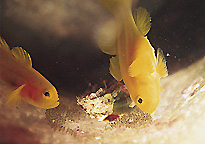 00 | 伊豆は黒潮の影響をつよく受ける。ダイバーなんて海のほんのわずかしか見ることができない。しかし黒潮のおかげでじつに様々な生き物と遭遇できる。1999にはしばらく伊豆の各地で見られたマンボウたち。黒潮に乗ってやってきたのだろうか。春から夏の風物詩とはいえいつも遭えるとは限らない。こんな遭遇があるからダイビングは楽しいのだ。 |