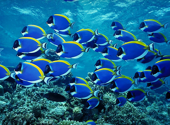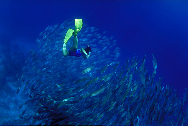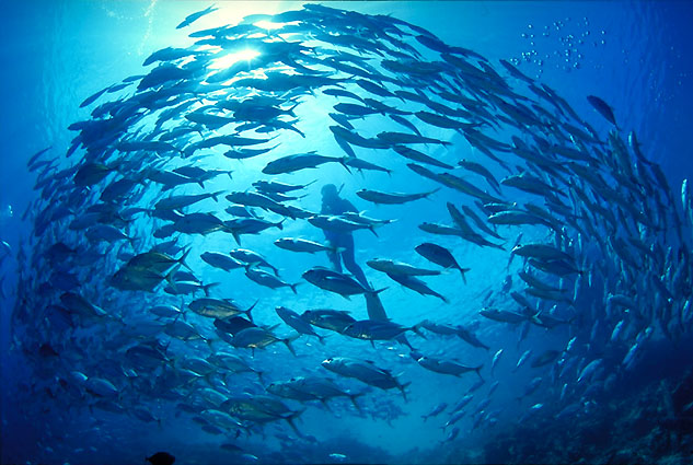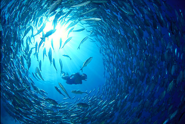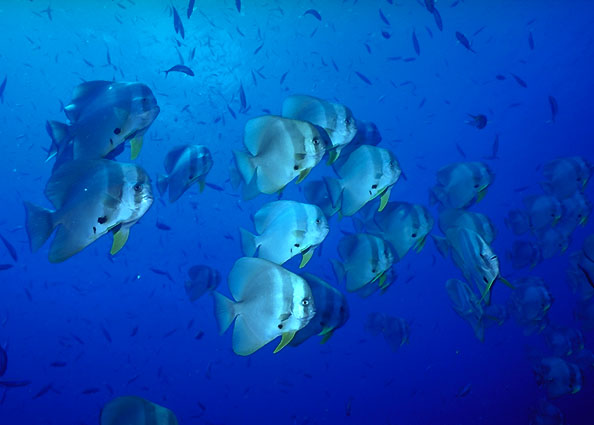 | なぜかアリアトールと南北アリアトールではマンタのシーズンが逆なのだ。 (マンタポイント) | モルディブのハタタテダイの群れはハンパじゃない数で群れている。 (グライドゥコーナー) |